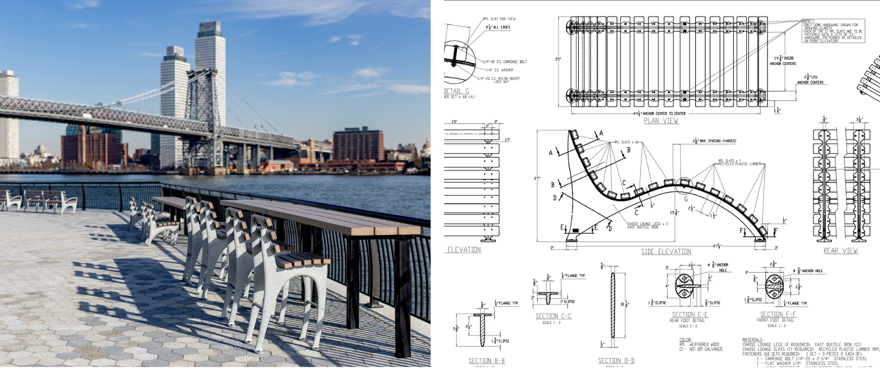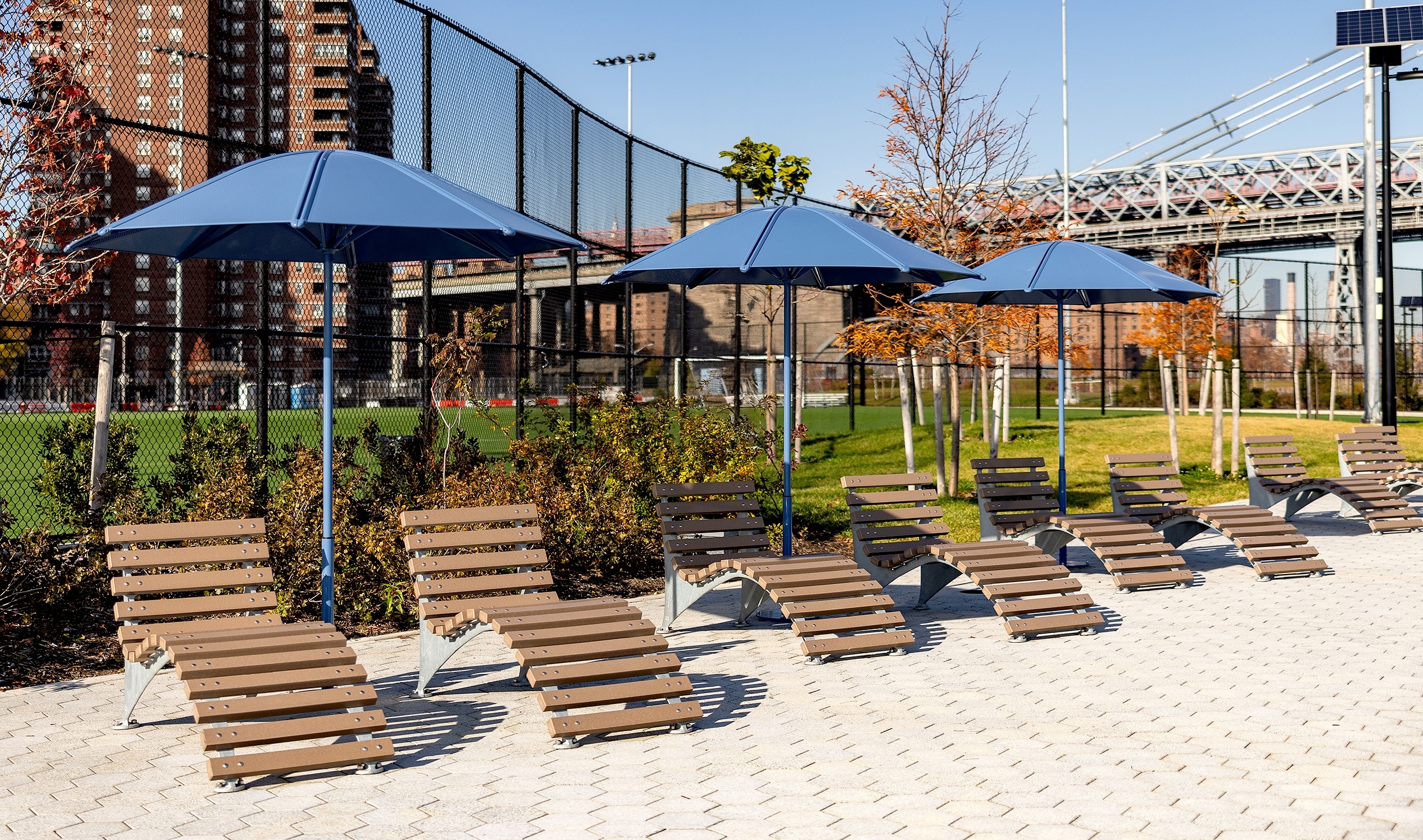 As of March 2026, our team has installed ove 200 benches, chaises, and stools so far as part of the newly renovated outdoor spaces at East River Park, and another 328 units scheduled to be installed by 2027. We look forward to our continued partnership in this beautiful waterfront space in New York City!